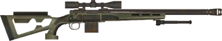 A classic bolt-action rifle design dating back to the 20th century. Its rugged design, performance against a variety of game, and accuracy made it a staple of American hunting before the Great War. The nuclear holocaust has merely changed the type of animal hunted by the owner of the rifle. The availability of replacement units often cause owners to neglect their rifles, though their performance even while damaged and far between repairs is a testament to the quality of this all American design. While the basic model was chambered for the venerable .308 round, hunters in the Capital Wasteland area are known to use a model chambered for .32 caliber rounds meant for pistols.