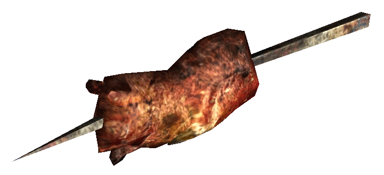 Squirrel on a stick is a common staple food eaten by denizens of the wasteland, made by ramming a stick through a squirrel and roasting it over an open fire, camping style.