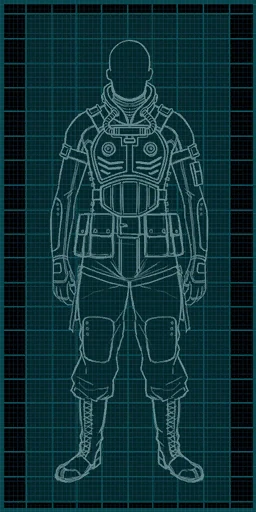 The core element of the suit is a central control system located in the torso, which controls the built-in medical dispenser, capable of injecting Med-X and stimpaks automatically, provides real time feedback on battlefield conditions, automatically fits the suit to the user's shape and frame[3] and automatically adapts systems to the user's specifications during testing and unlock features as they come online (though since it never left the testing phase, the control system requires the user to complete infiltration tests in the X-13 research facility), based on an ingenious firmware upgrade created by researcher Kael.[4] These upgrades are necessary for the user to benefit from the more advanced subsystems, such as gloves coated with a rubberized dampening compound to enhance manual dexterity[5] or advanced servomotor buffers in the leg rigs, allowing for faster sneaking.[6]