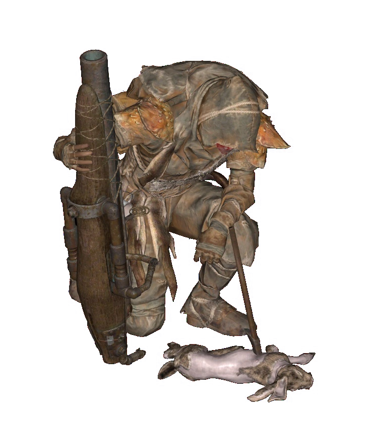 The trappers have not strayed far from the tools they used when they were fishermen and hunters. They commonly use meat and pole hooks, lever action rifles, hunting rifles, and harpoon guns as weapons, and wear makeshift armor made from pelts, skins, and fishing nets.
