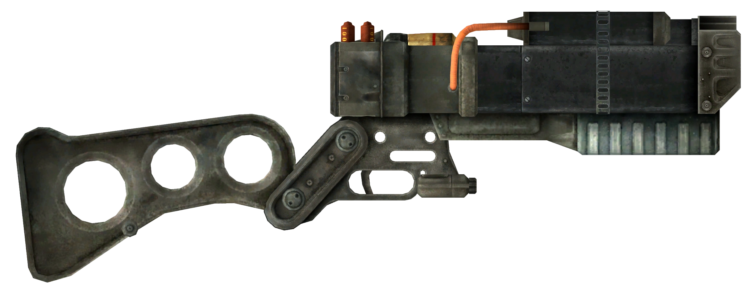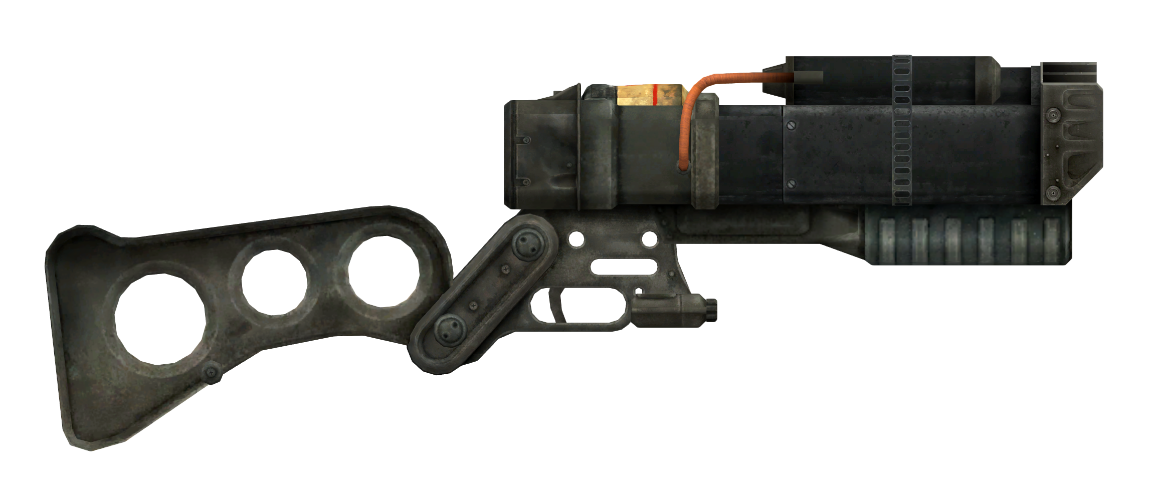 The tri-beam laser rifle (GRA) has the appearance of a "sawed-off" laser rifle, being shorter in length, without the tube underneath the barrel, and with a new emitter aperture and wiring that allows three beams to be fired with each shot.