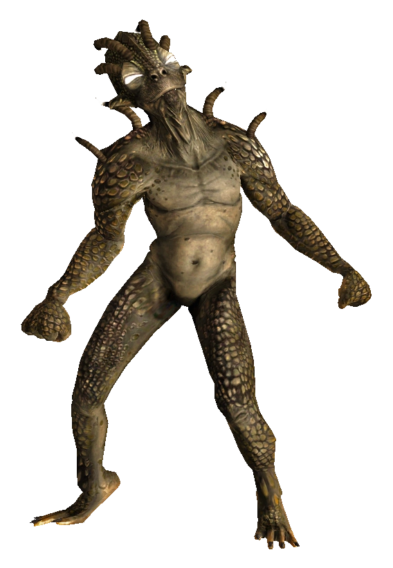 Tunneler appear to be reptilian-humanoids with dark, scaly skin, large bioluminescent eyes, a mouth filled with sharp reptilian teeth and chitinous spikes protruding from their shoulders and heads. Tunnelers are found underground, as their name implies, and are noted to be afraid of bright lights and loud noises. Every now and then they will flee from combat and head back underground. This can be seen easily by throwing a flash bang or firing a flare gun at a tunneler. Their over-large eyes appear to be an adaptation to the conditions of their preferred habitat and may be sensitive to light, which would explain their extreme aversion to weapons like flash bangs and flare guns. The tunneler's bite is known to be as deadly as a bark scorpion's.[4]