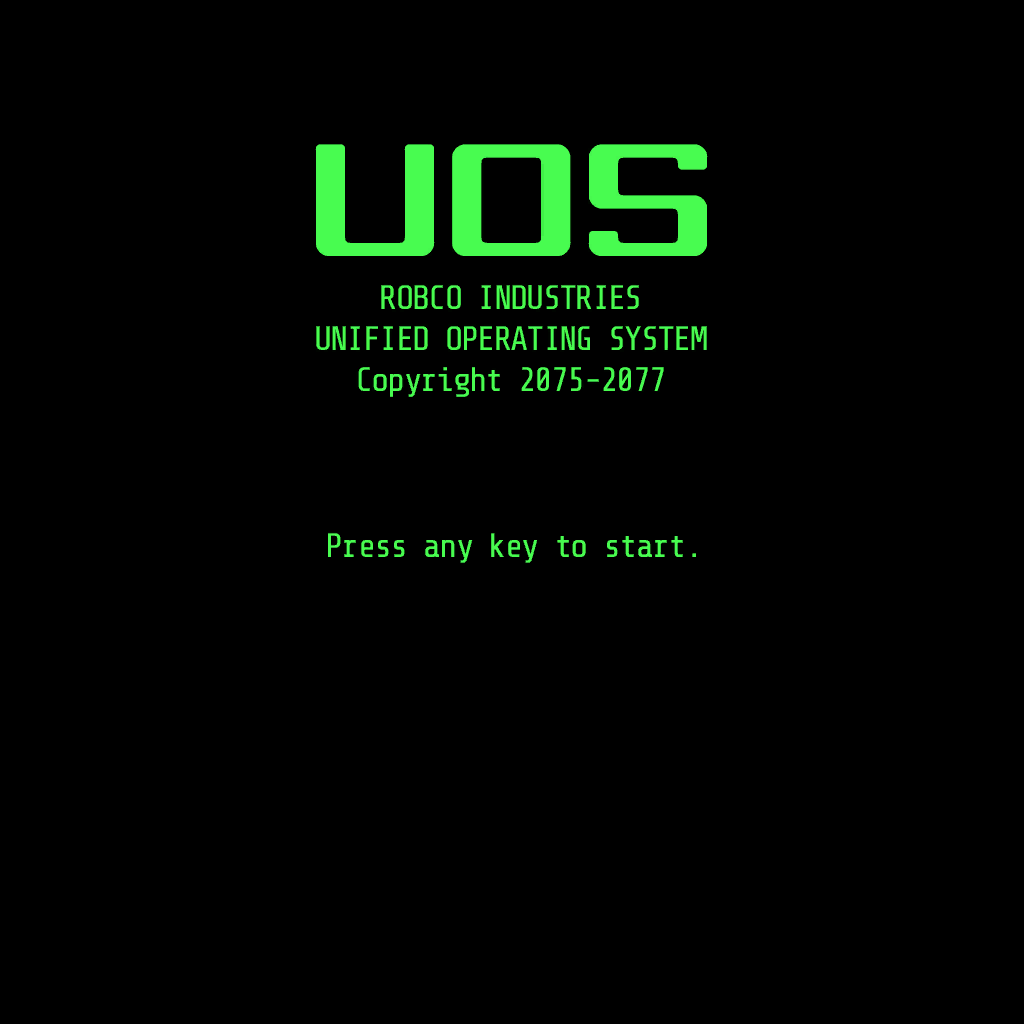 The UOS was published and copyrighted by RobCo Industries in 2075 with an expiration date in 2077.[1] As the name suggests, it is an operating system: A software medium between the user and the computer hardware itself, including the kernel, which controls the very basic processes like memory management, the execution of programs and drivers which handle networking between computer terminals and mainframes, as well as sending and receiving of data to and from the keyboards, mice, monitors etc. which are connected to them. The operating system is also responsible for the user interface, i.e. what the terminal user sees on the screen. In the UOS's case, this is a command line interface.[2]