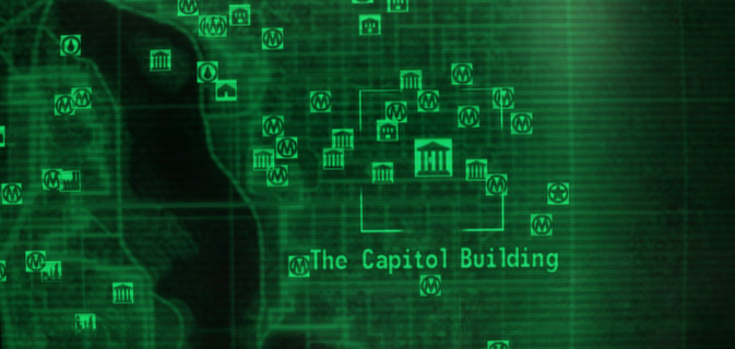The Capitol Building complex comprises four areas, two of which can be directly accessed from the Capital Wasteland. The "Capitol Building" entrance from the west, in The Mall, exits into the Capitol Building west entrance area. The Seward Square entrance from the east is one of two doors into the Capitol Building west entrance.