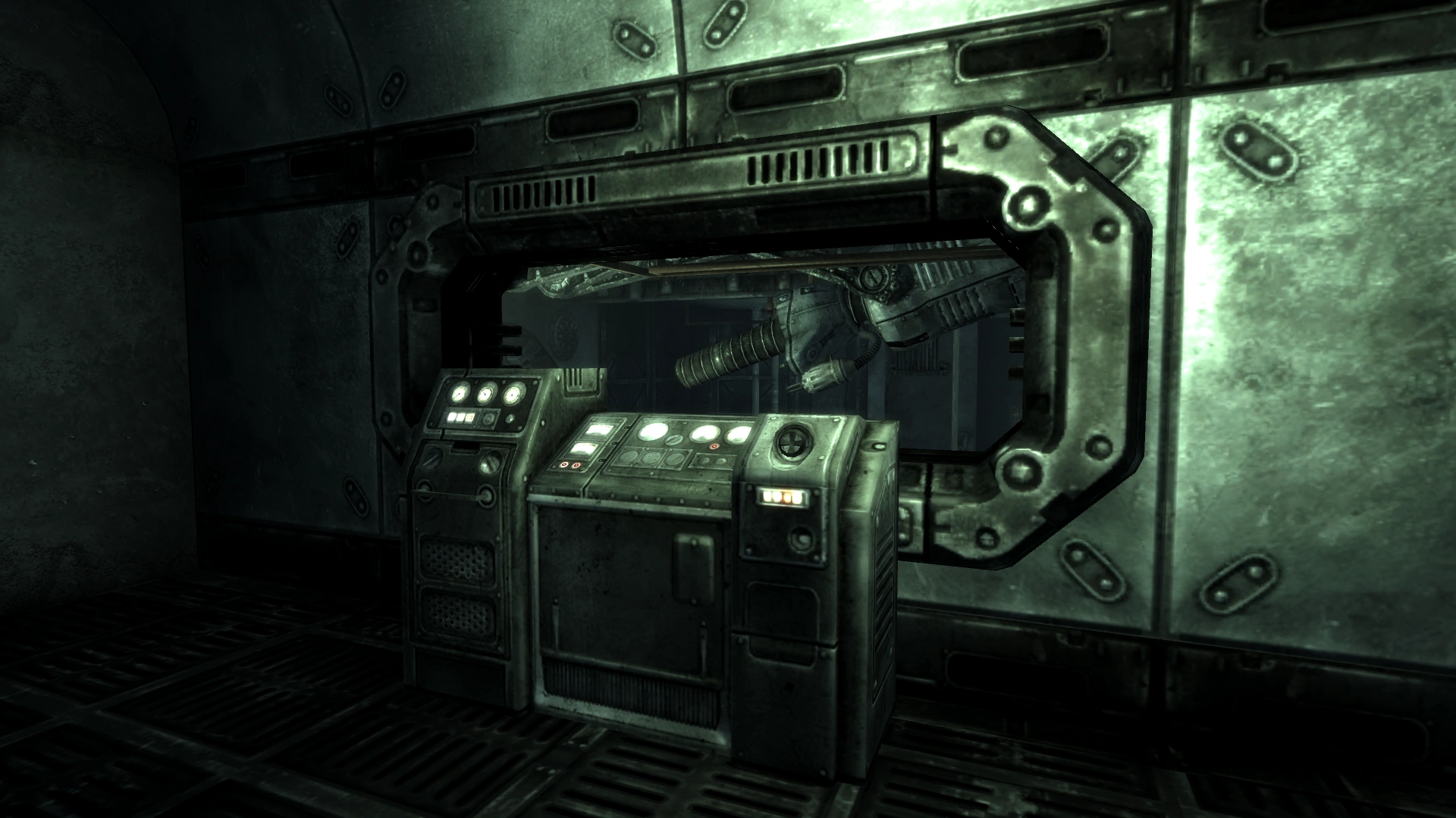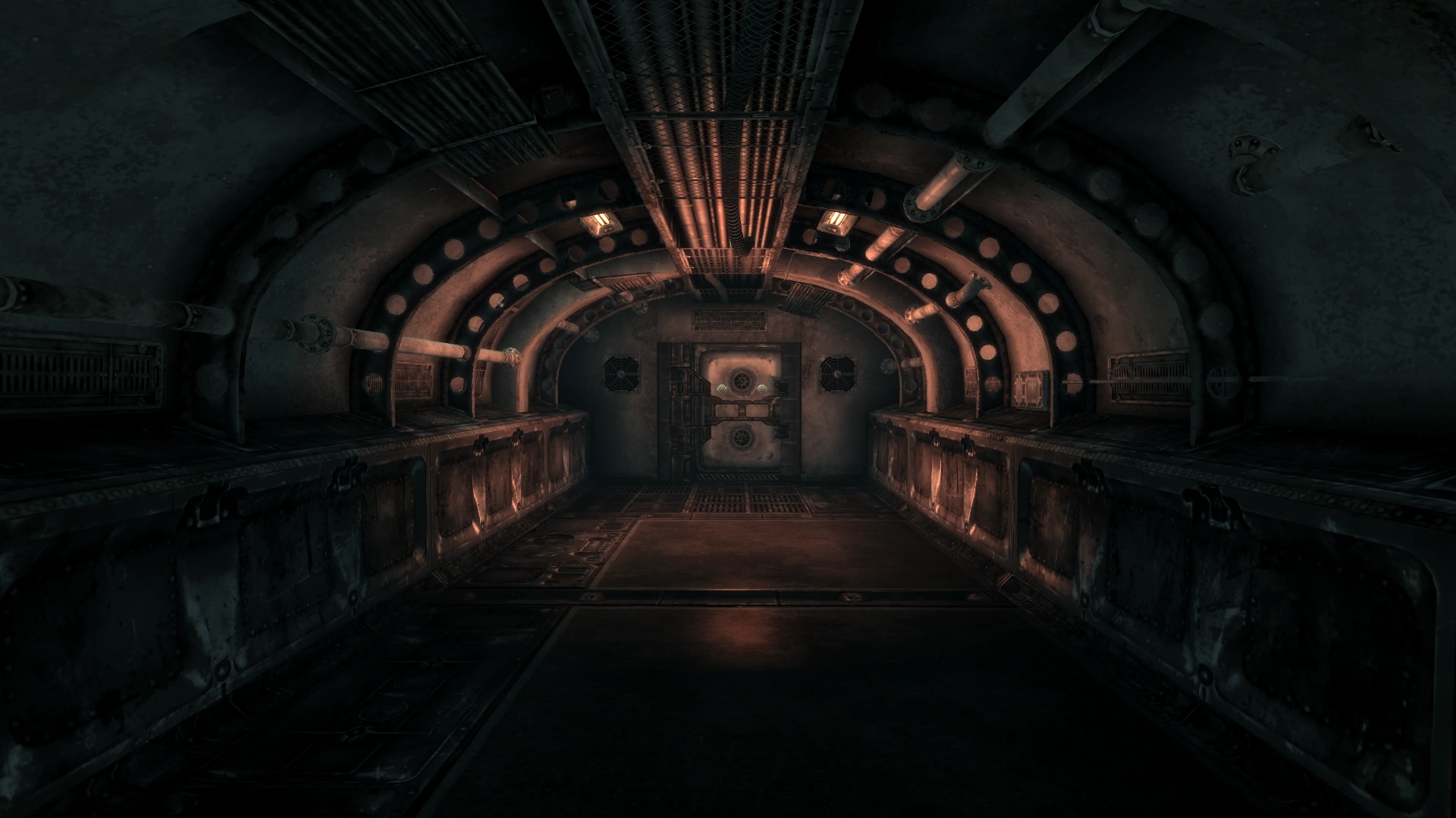 Rad scanners flanking the entrance deeper into the Vault