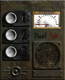 ↑Vault 101 PA system: "Remember - A clean vault is a healthy vault. Please place all trash into the appropriate incineration receptacle on your scheduled burning day."
