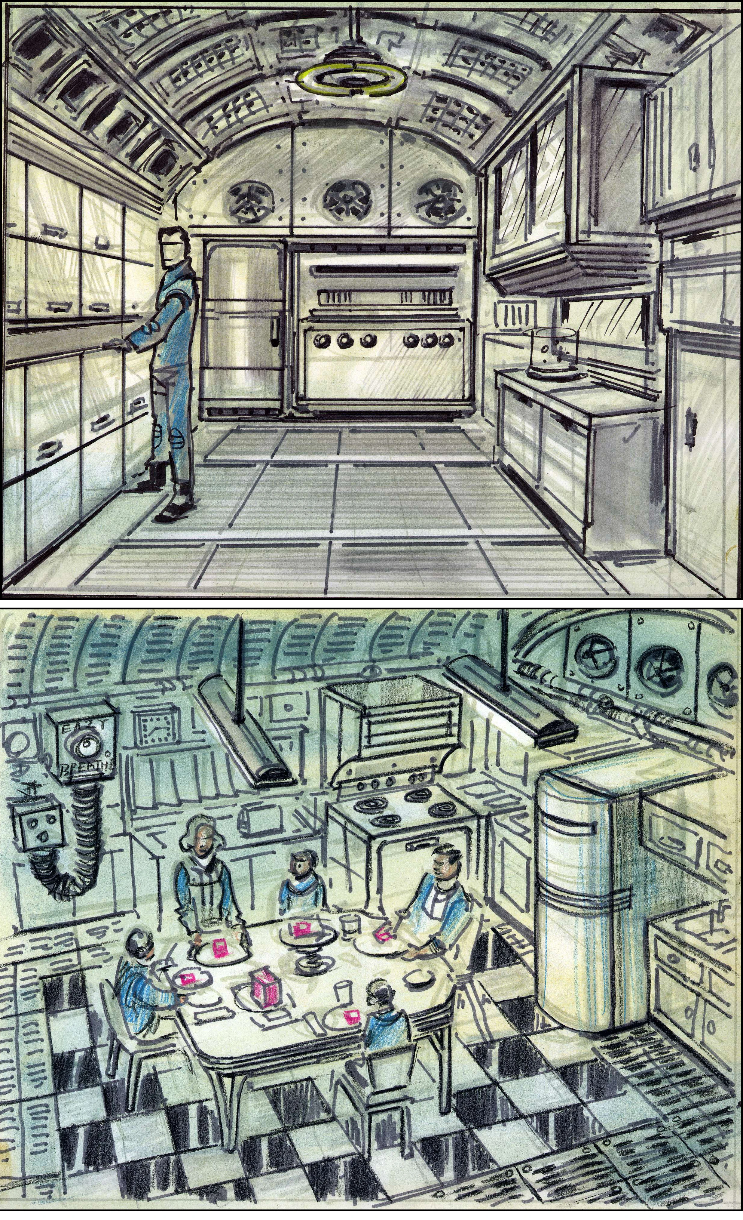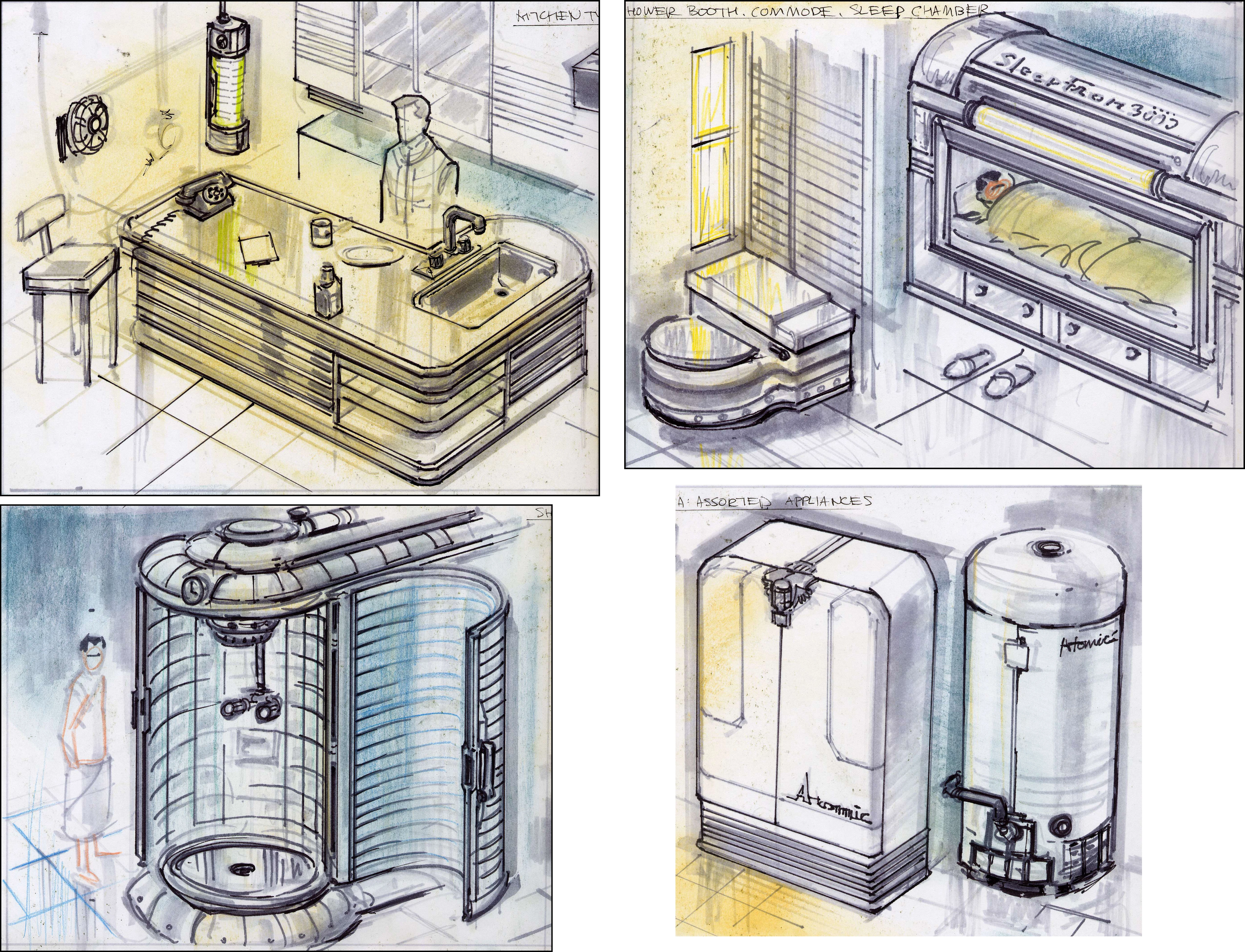 ↑Museum of Technology vault system tour: "Moms will love how our Culinator 3000 Kitchen System makes cooking a breeze. Mmmmm, I can smell the muffins baking now!" (Vault-Tec exhibit messages)