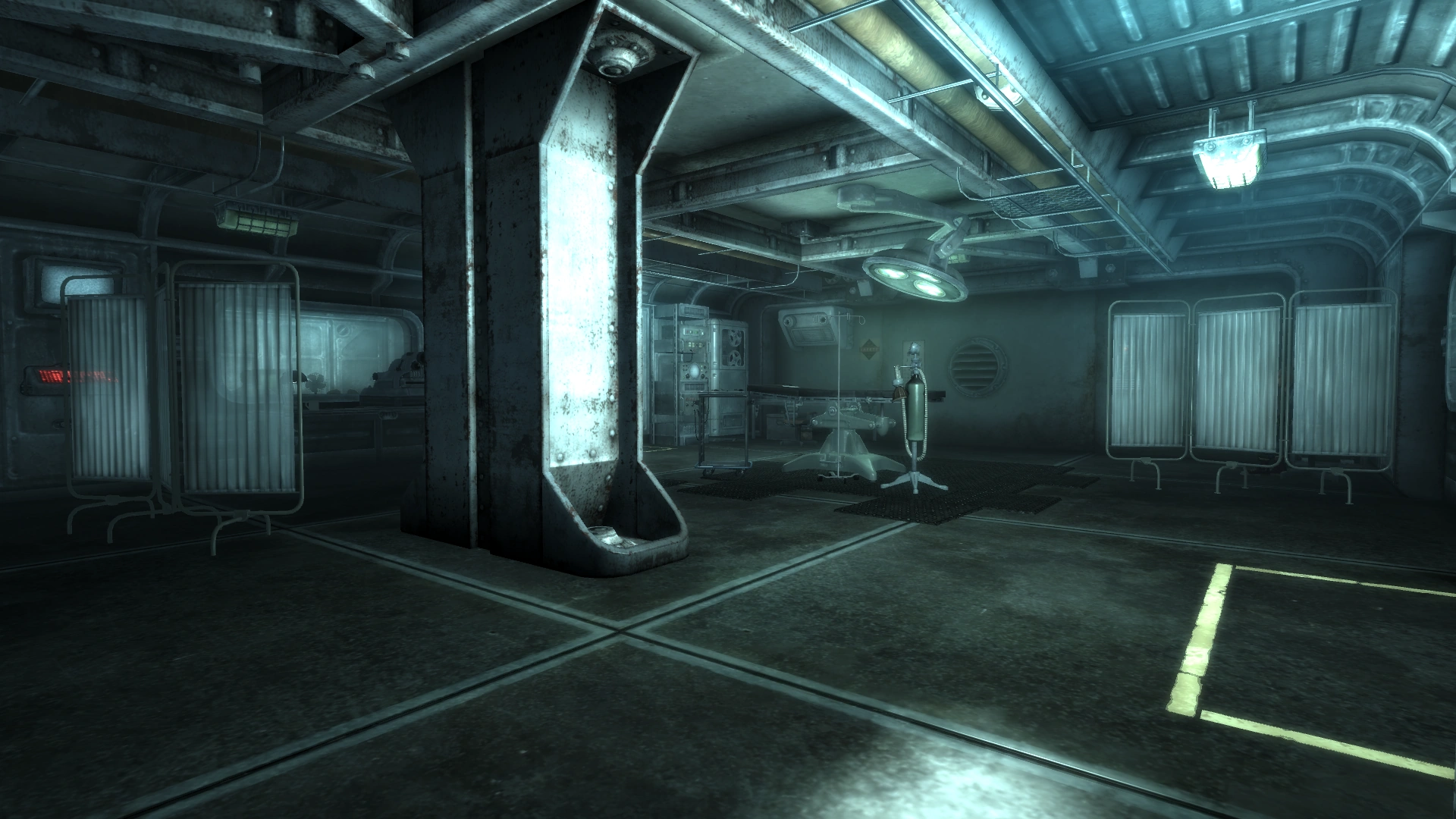 Typically found on the entrance level, the EML is one of the most important places in the Vault. Despite its name, a typical EML is a fully featured medical clinic allowing Vault dwellers to undergo medical procedures in a safe and sterile environment. A medic is expected to be present on site 24 hours a day, to respond to any emergencies immediately.[84] The EML typically varies in size from Vault to Vault. Some installations abandon the moniker entirely and simply refer to it as the Clinic.