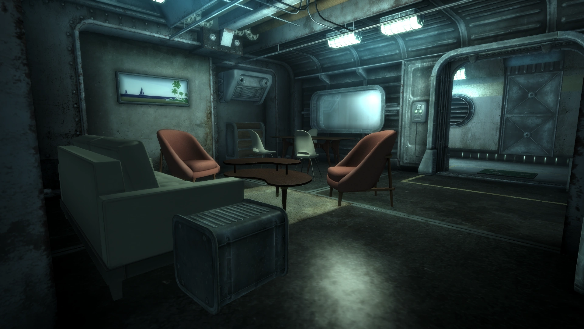 A typical living room in a Vault.