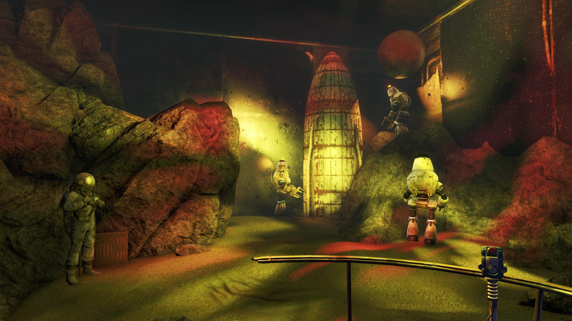 The expansive Vault-Tec Corporation Vault at the Galactic Zone is a marvel of engineering, showcasing how Vault technology can be adapted and used in extraterrestrial environments. The subterranean outpost shows how RobCo robotics and the construction talents of Vault-Tec come together to make colonization of other planets a possibility.[1]