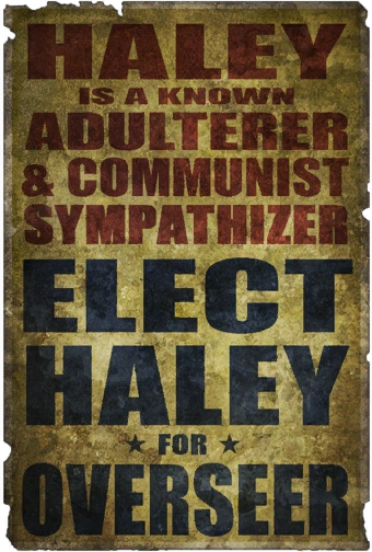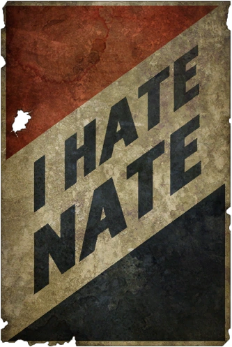 - The poster with the slogan "I Hate Nate" is a reference to U.S. President Dwight D. Eisenhower's "I Like Ike" campaign.