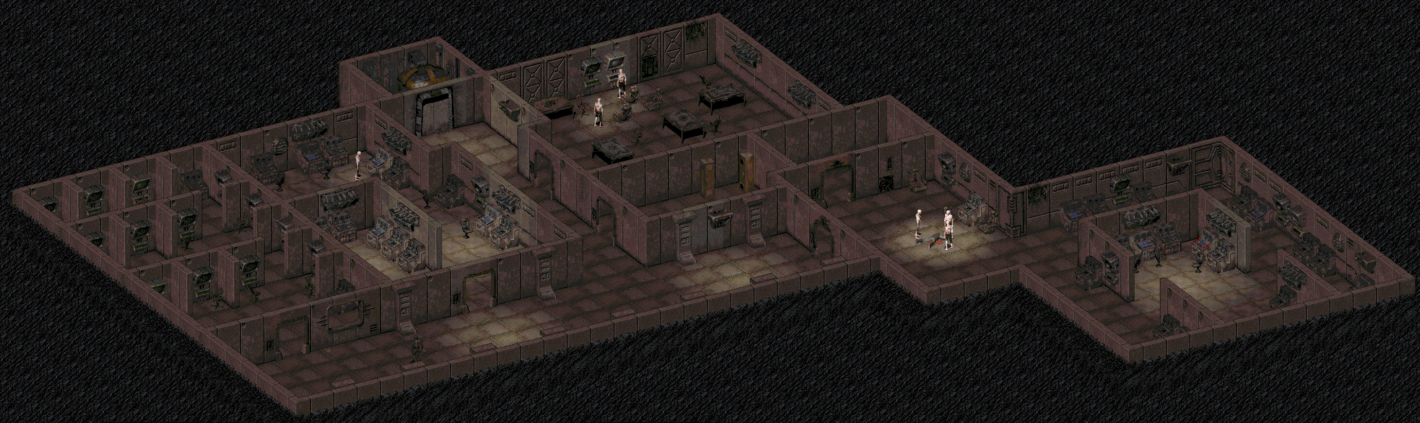 (LEADER.MSG) - ↑ Water purification computer: "{117}{}{After shutting down the Water Purification Computer, you can now hear the repaired water pump working in the distance, bringing water up from what must be a deep well under Necropolis.}"