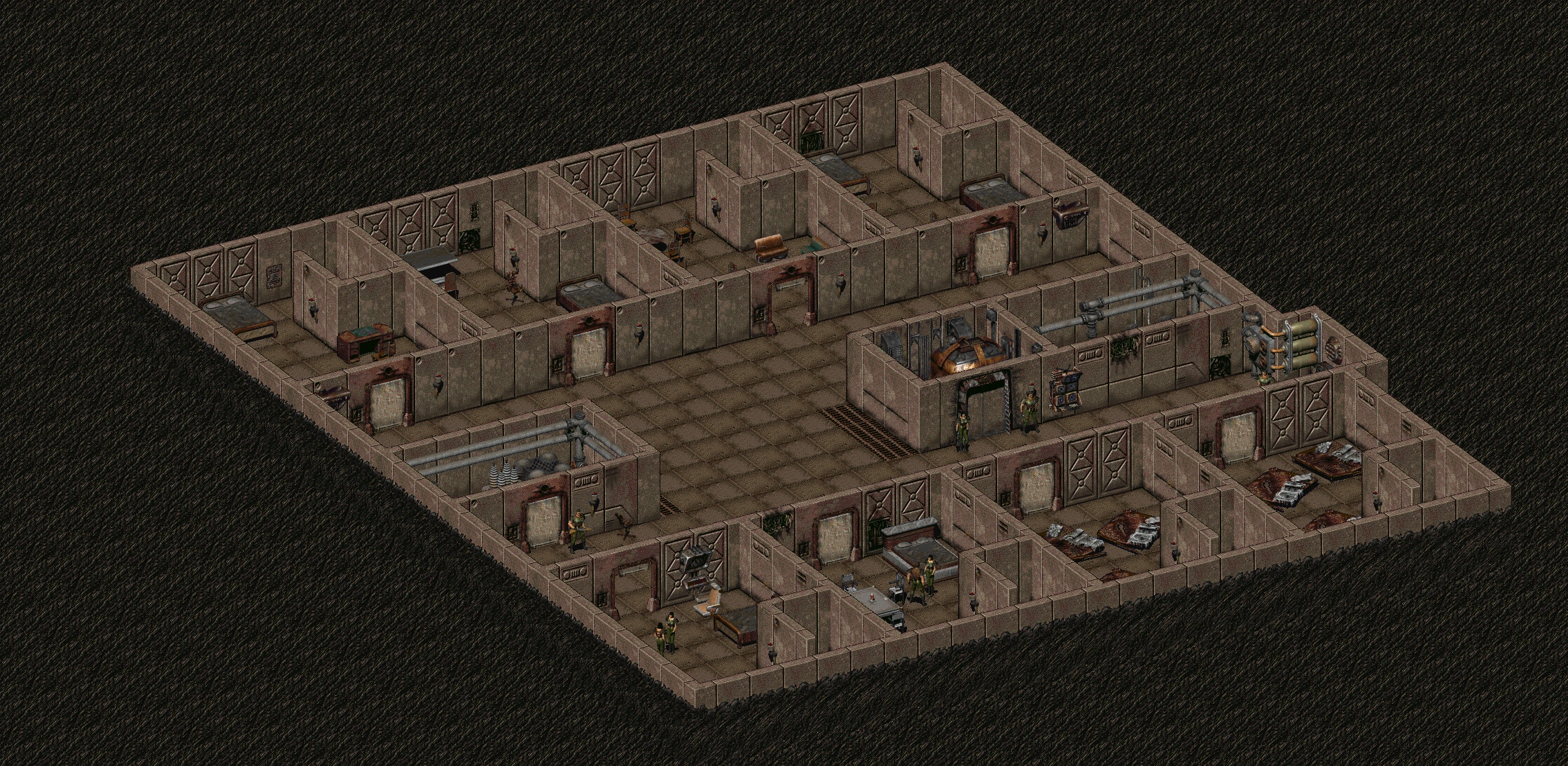 The living quarters hold the power generator for the Vault, which can be repaired to enable lights, prompting various hilarious comments from the Khans. There is also plenty of loot hidden in lockers, including radiation drugs, armor, and ammunition.
