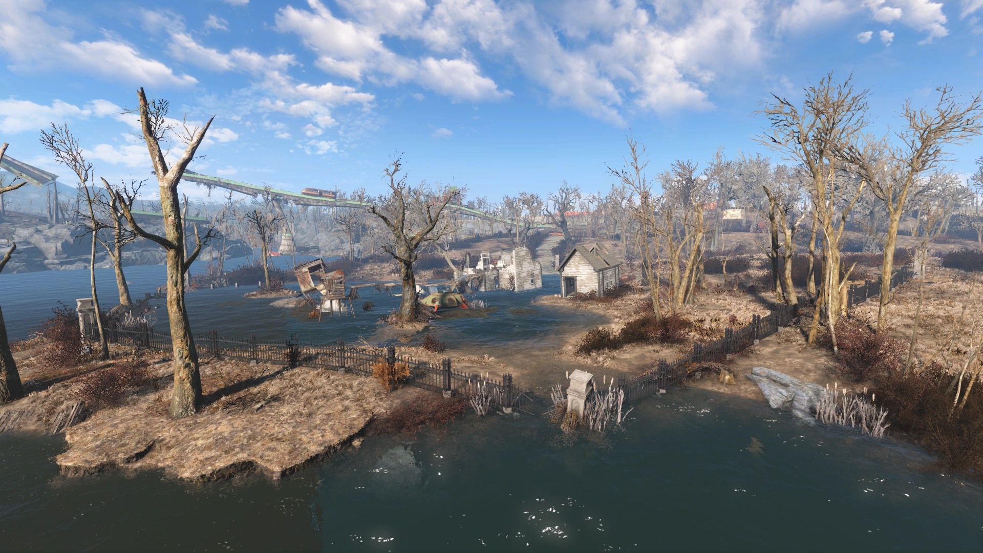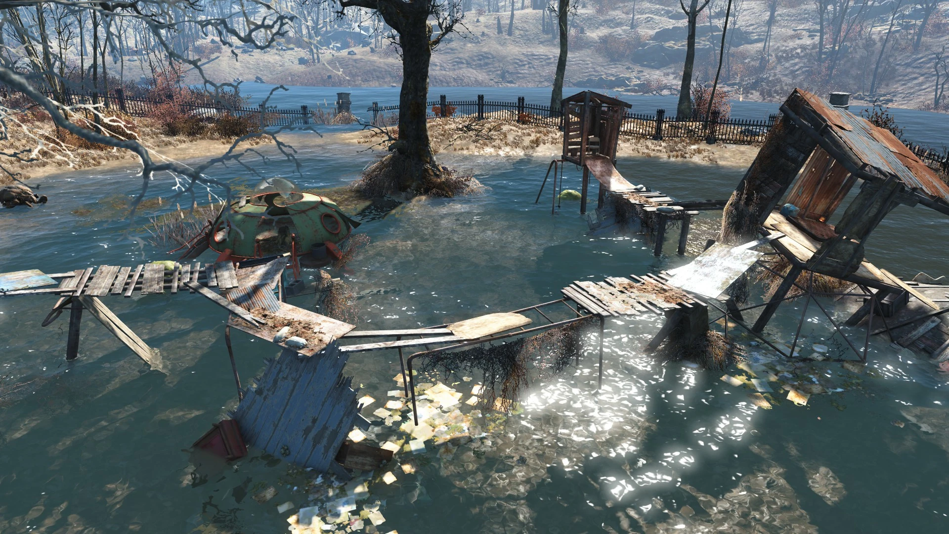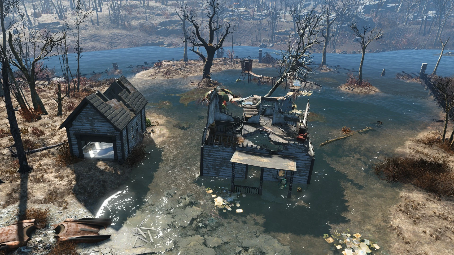 The-well-to-do Westing family once owned this idyllic slice of riverfront property, but now it is a mirelurk swamp. However, it holds some treasures of a bygone era: baseball memorabilia owned by the pre-War Coach Westing.[1][2]