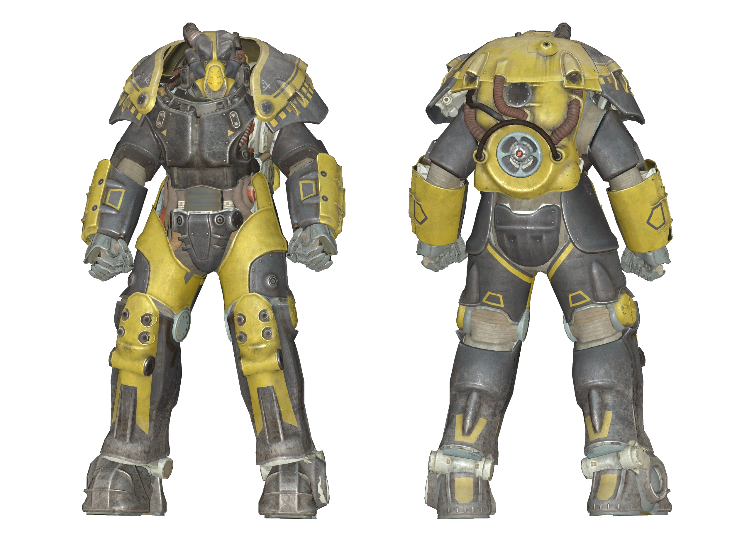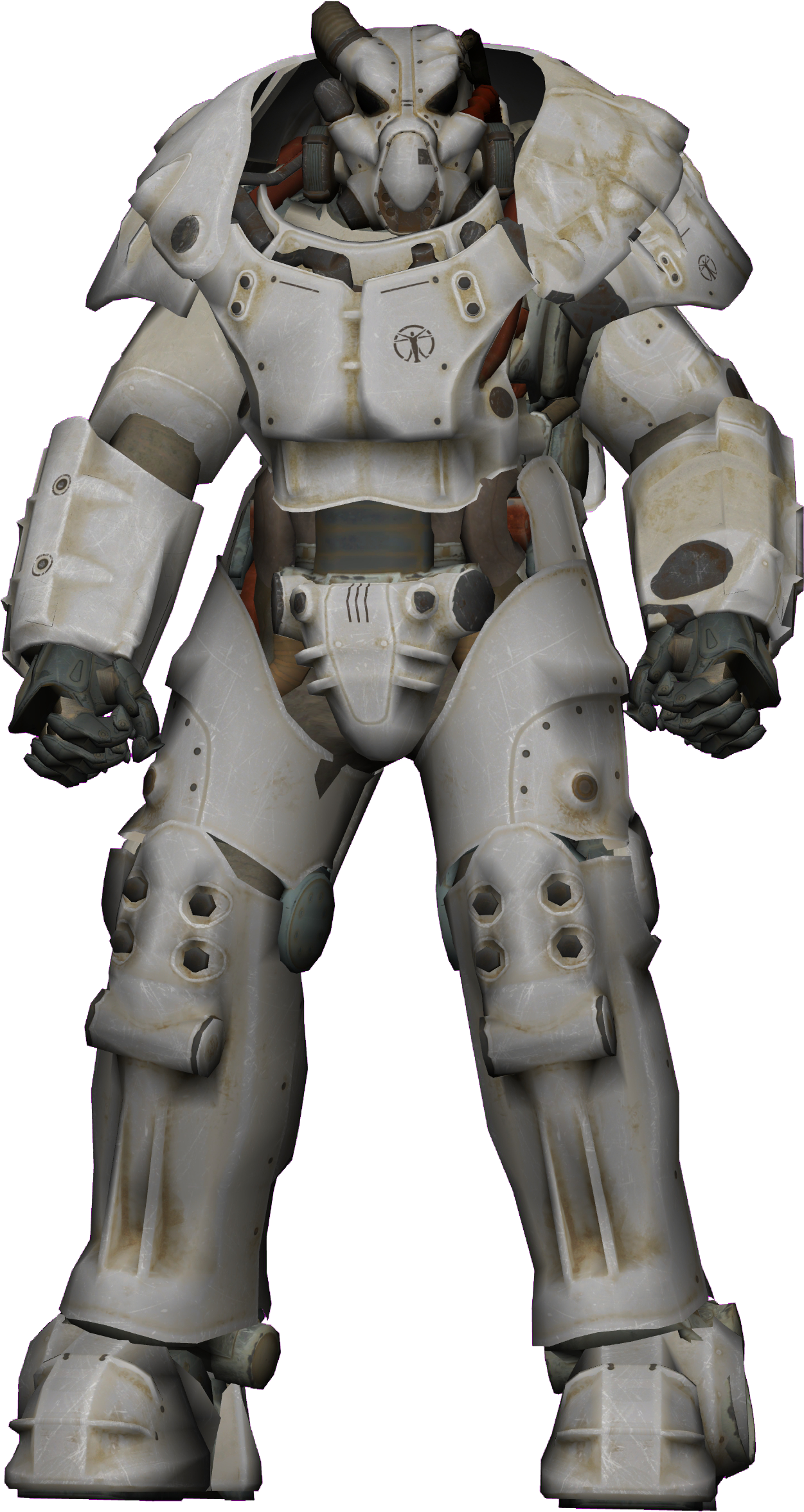 X-01 power armor is a prototype model of power armor developed by the United States shortly before the Great War. It was the last and most advanced model of power armor developed before Great War, and serves as the predecessor to all post-war models of advanced power armor used by the Enclave.